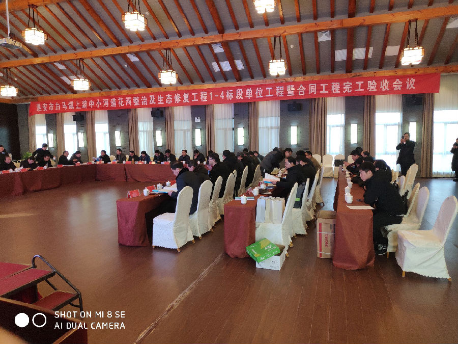 2019年1月16日,淮安市白馬湖投資發展有限公司在白馬湖漁耕驛站酒店主持召開淮安市白馬湖上游中小河道花河整治及生態修復工程1-4標段單位工程暨合同工程完工驗收會議。由工程建設、設計、施工、監理、跟蹤審計、第三方檢測等單位代表組成單位工程暨合同工程完工驗收工作組,邀請洪澤區人民政府、蘇淮高新區管委會,市水利局、環保局、財政局、審計局、園林局、國土資源局、白馬湖辦,洪澤區發改委、水利局,蘇淮高新區住房和城鄉建設局,洪澤區高良澗鎮街道辦事處、黃集街道辦事處,蘇淮高新區淮洪路辦事處、張碼辦事處,淮安市水利工程質量安全監督站等單位代表列席會議。我公司承建的施工2標段順利通過完工驗收,其中張玉河節制閘子單位工程被評為優良等級。